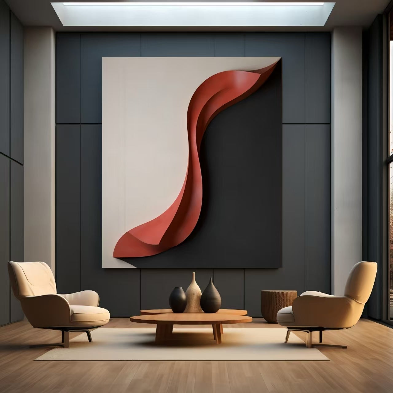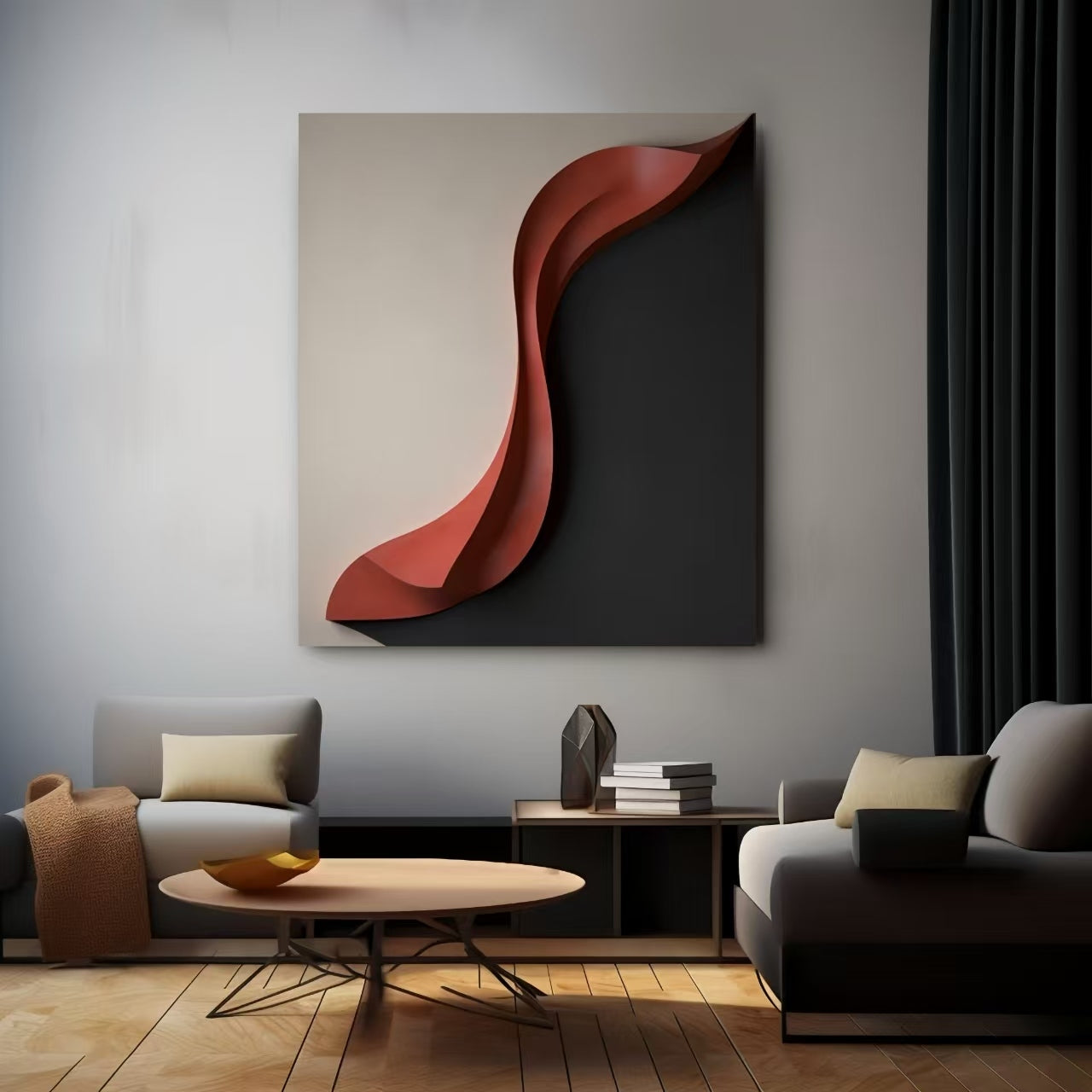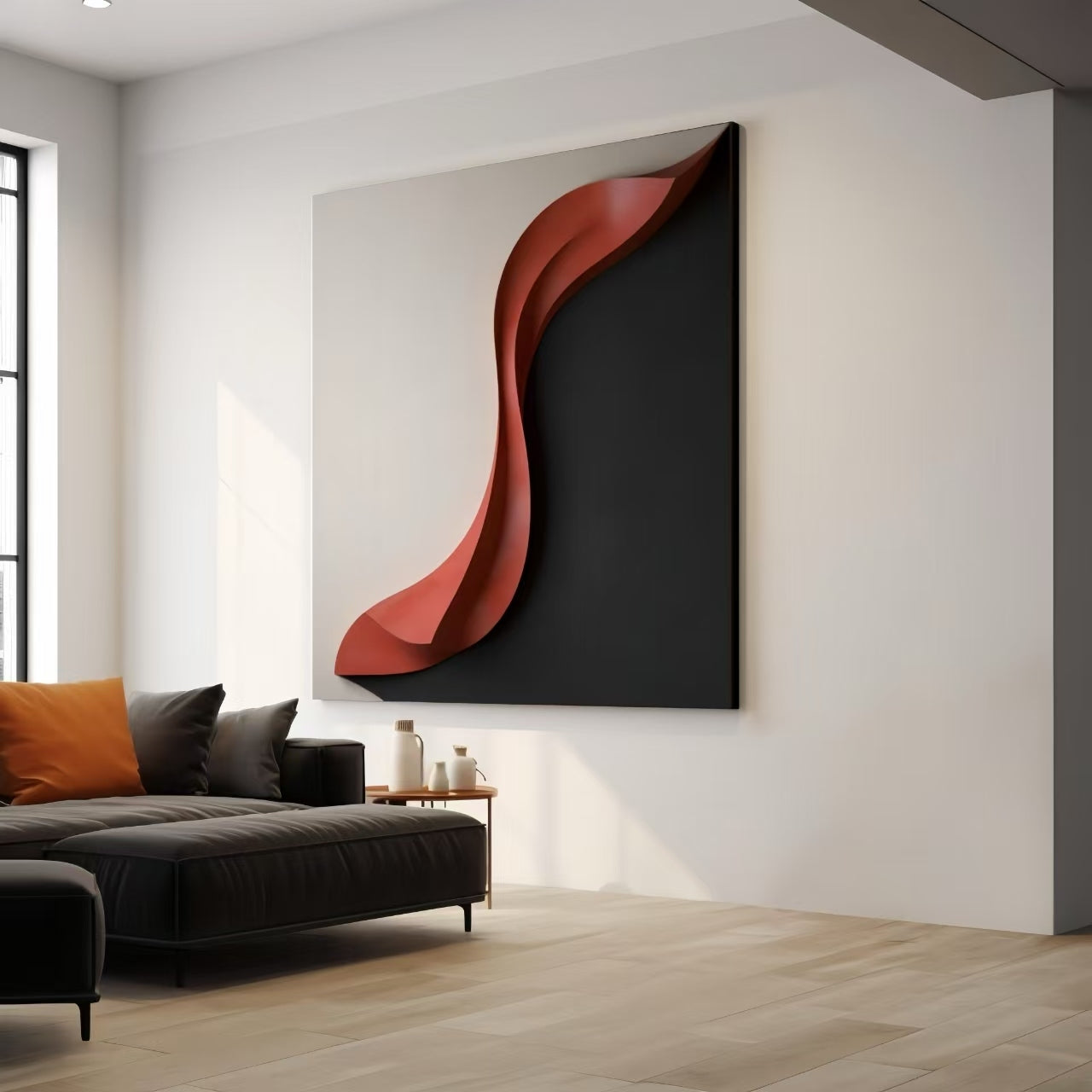 Experience a new level of artistic expression with Red Horizon. This stunning Sculptural 3D Art Piece will impress with its intricate design and bold palette. Crafted with precision and care, it will add a touch of sophistication to any space. A masterpiece to behold.